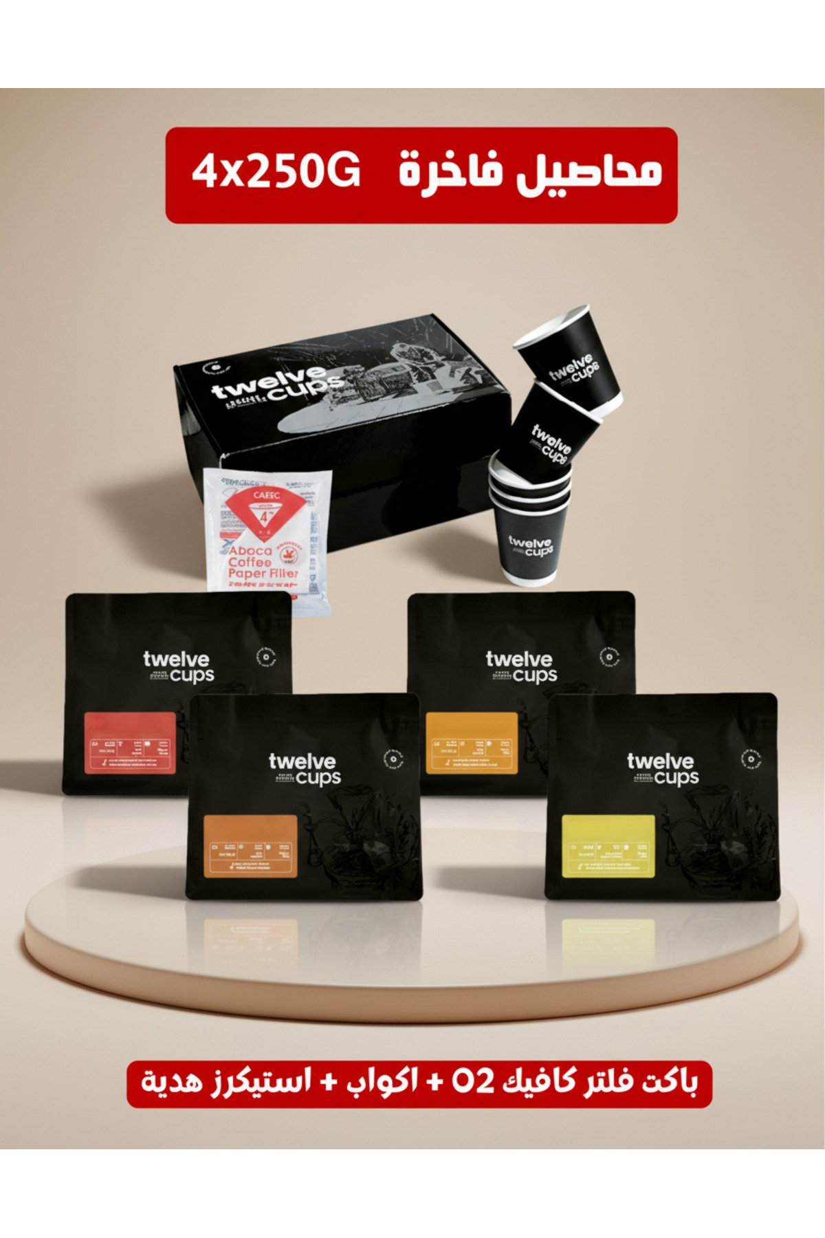 اسم المنتج: باكج محاصيل القهوة الإثيوبية المختصة 4 × 250 جرام + هدايا