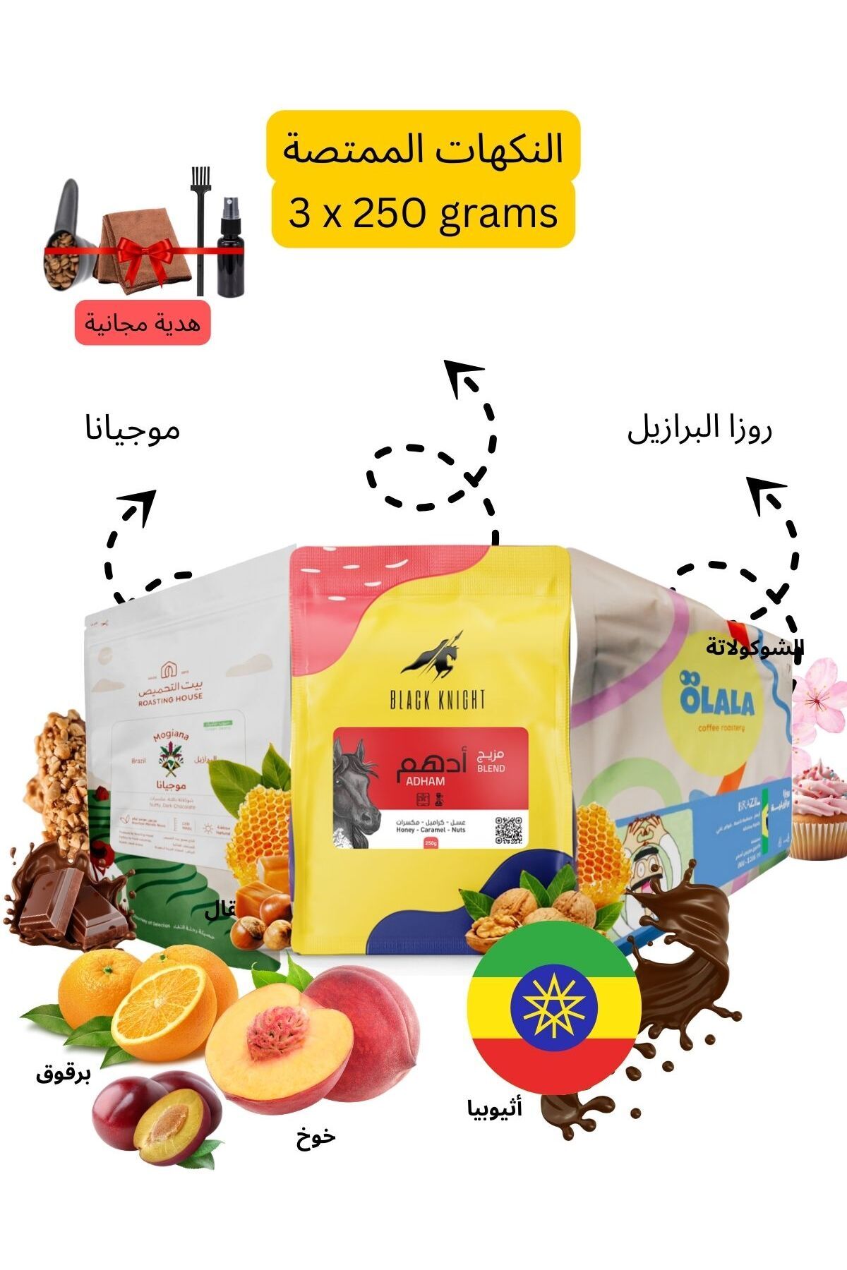 قهوه برازيلي تمنحك تجربة قهوة مختصة متكاملة مع ثلاثية فاخرة من محاصيل متنوعة تجمع بين البرازيل وإثيوبيا ومزيج أدهم، لتستمتع بنكهات متعددة في كل كوب تم تصميم هذا البكج لعشاق القهوة الذين يبحثون عن تنوع حقيقي بين النكهات من الفواكه والشوكولاتة إلى العسل والكراميل مع توازن احترافي